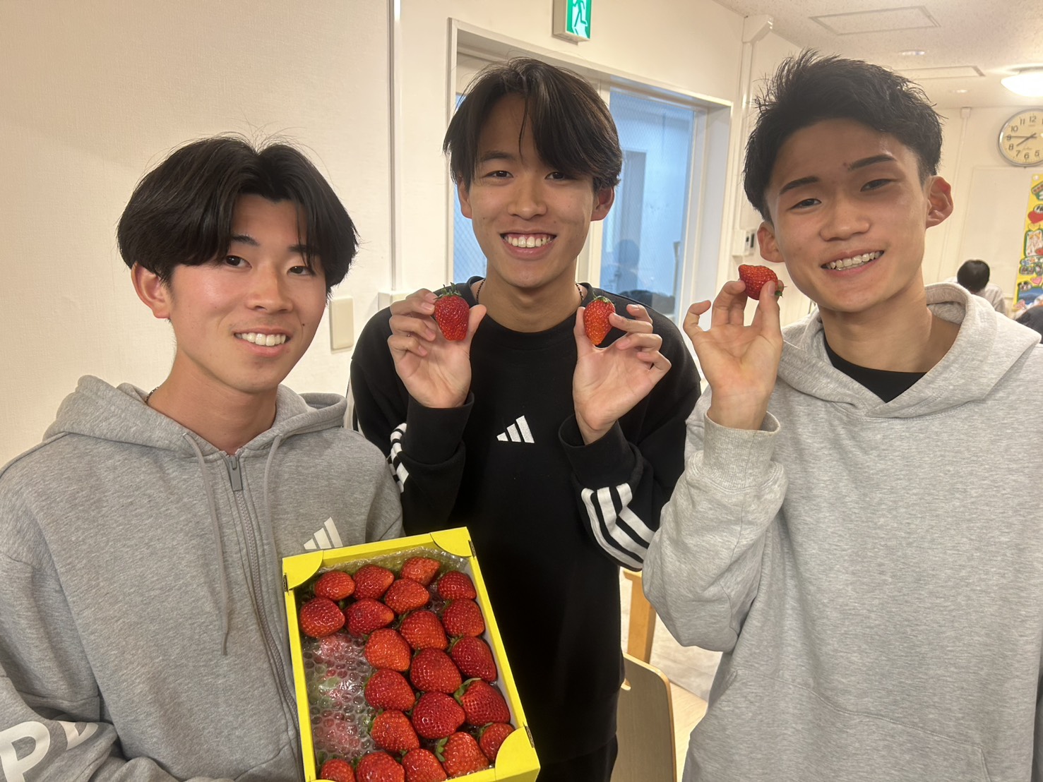 先日、平野マネージャー(3年)の保護者の方より、イチゴの差し入れを頂きました。