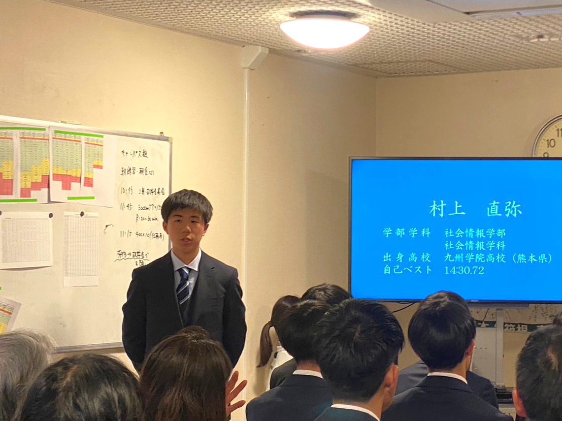 村上 直弥(むらかみ なおや) 出身:九州学院高校(熊本県) まだまだ持ちタイムは下の方ですが、しっかりと強くなるという高い志を持ち、安定感と信頼のある選手になれるように1日1日を大切に頑張りたいと思います。 |